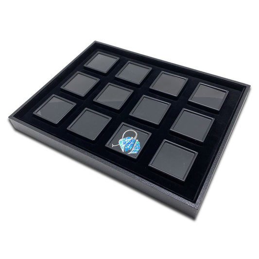 12 Black Gem Boxes with Black Wood Tray