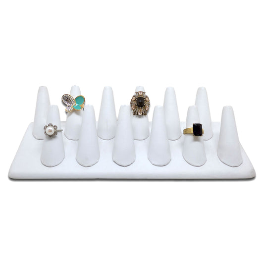 12 Finger White Leatherette Ring Jewelry Display