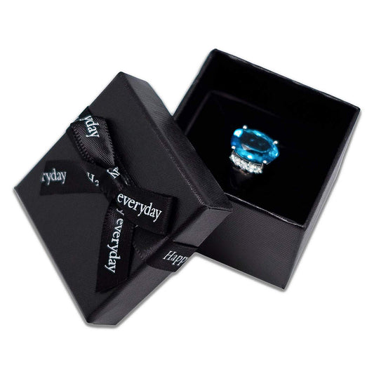 1 3/4" x 1 3/4" Black Linen Paper Cardboard Ribbon Bow Jewelry Box