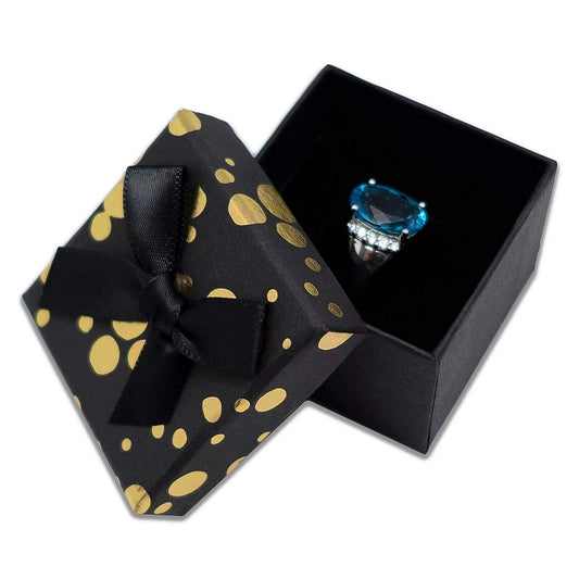 1 3/4" x 1 3/4" Black and Gold Polka Dot Cardboard Ribbon Bow Jewelry Box