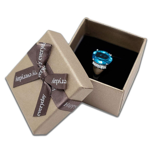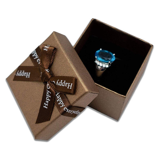 1 3/4" x 1 3/4" Brown Linen Paper Cardboard Ribbon Bow Jewelry Box