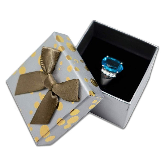1 3/4" x 1 3/4" Gray and Gold Polka Dot Cardboard Ribbon Bow Jewelry Box