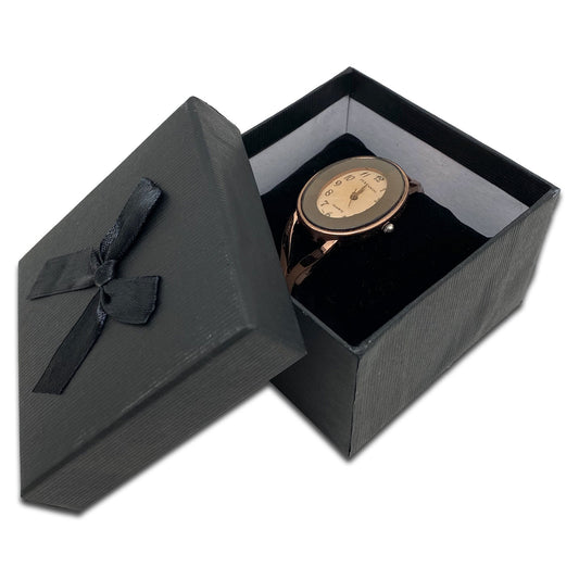 3 1/4" x 3 1/4" Black Cardboard Watch Bracelet Ribbon Bow Jewelry Box