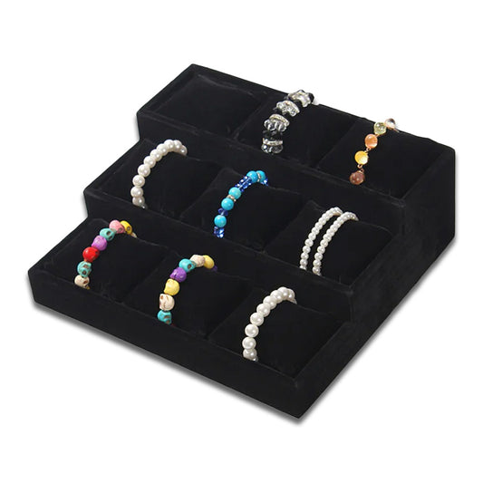 10 1/2" x 9 1/4" Wood Tray with 9 Black Velvet Jewelry Display Pillows