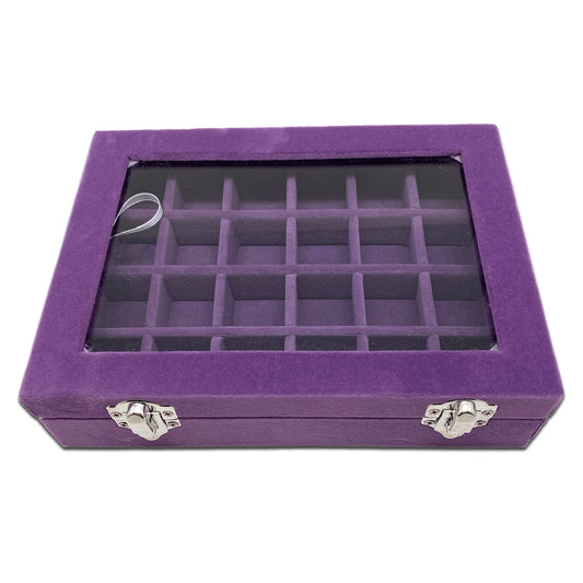 8" x 6" 24 Compartment Purple Velvet Display Case w/ Glass Top