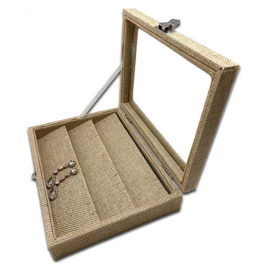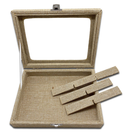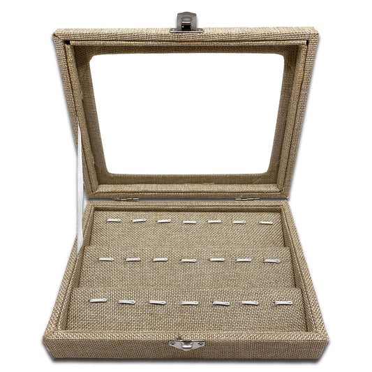 8" x 6" Beige Burlap Display Case w/ Glass Top for 18 Pairs of Earrings