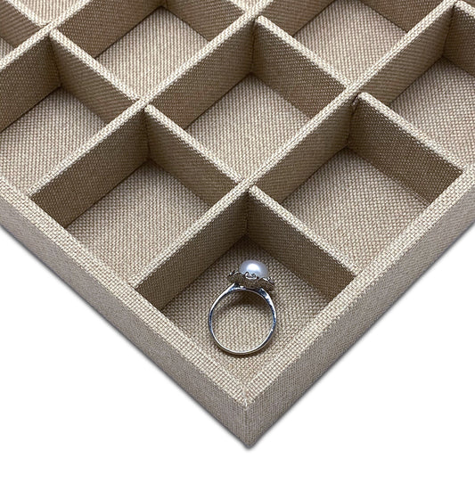 Deluxe Linen Burlap 24 Compartment Stackable Jewelry Tray