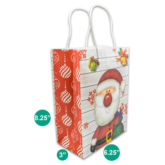 Kraft Paper Christmas Santa Claus Shopping Gift Bags (12-Pack)