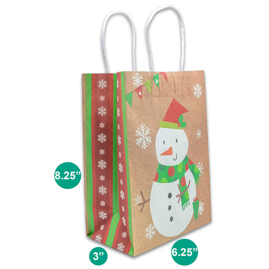 Kraft Paper Christmas Snowman Shopping Gift Bags (12-Pack)