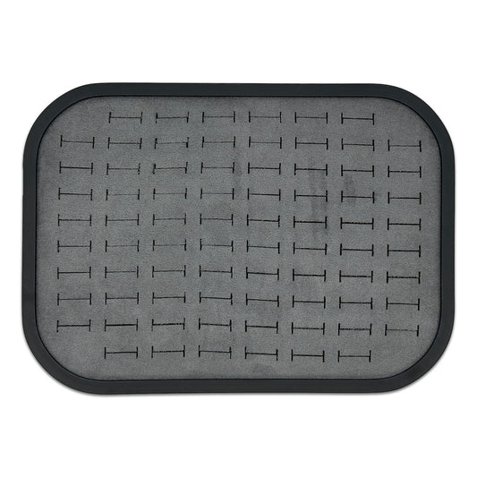 10 5/8" x 7 5/8" Black Brushed Aluminum Gray Velvet 76 Ring Display Tray