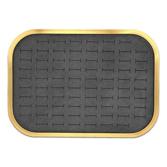 10 5/8" x 7 5/8" Gold Brushed Aluminum Gray Velvet 76 Ring Display Tray