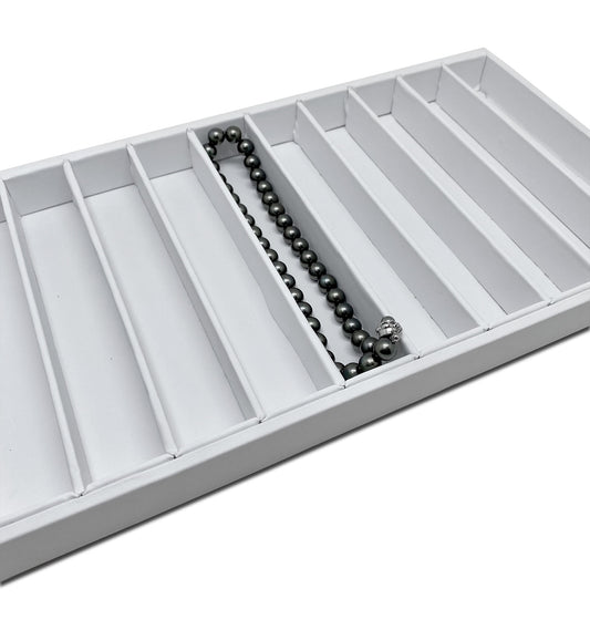 White Leatherette 10 Column Compartment Jewelry Display Tray