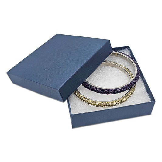 3 1/2" x 3 1/2" x 1" Navy Linen Pattern Cotton Filled Paper Box