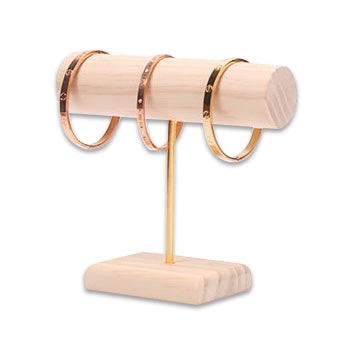 6" Natural Wood Single Round T-Bar Display with Gold Accent