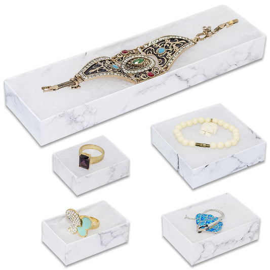 100 Piece Marble White Cotton Filled Jewelry Box Assortment Pack
