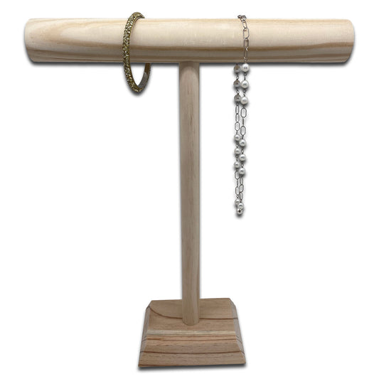 9" Natural Wood Single Round T-Bar Display with Gold Accent