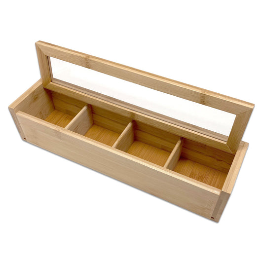 12.5" x 3.25" 4-Compartment Bamboo Jewelry Organizer Case