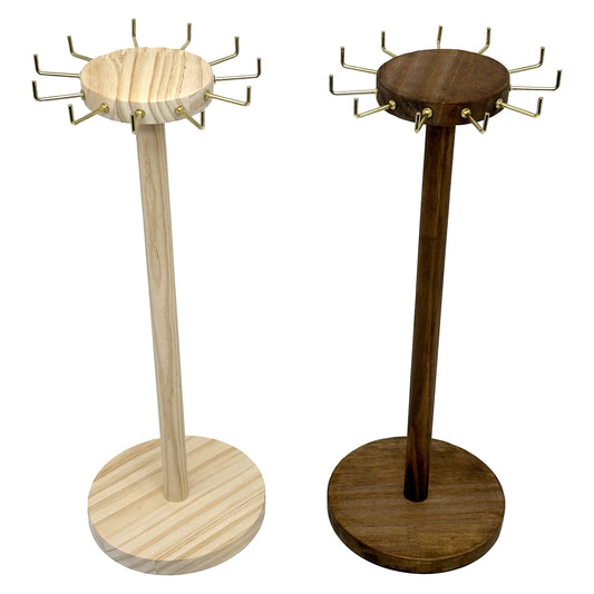 15 3/4" Natural Pine Wood Round Necklace Display Stand with 11 Gold Hooks