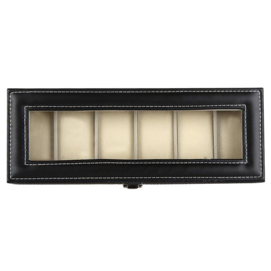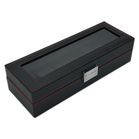 13" x 5" x 3 1/4" Black Carbon Fiber Leatherette Watch and Bracelet Display Case