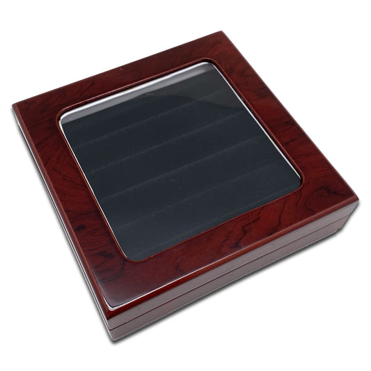 6 3/8" x 6 3/8" Rosewood Ring Display Case with 6 Roll Black Velvet Insert