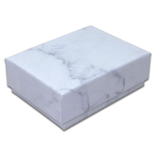 2 1/8" x 1 5/8" White Marble Paper Earring Box with Black Foam Insert