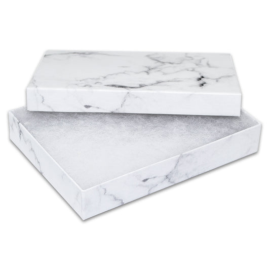 5 7/16" x 3 15/16" x 1" Marble White Cotton Filled Paper Box