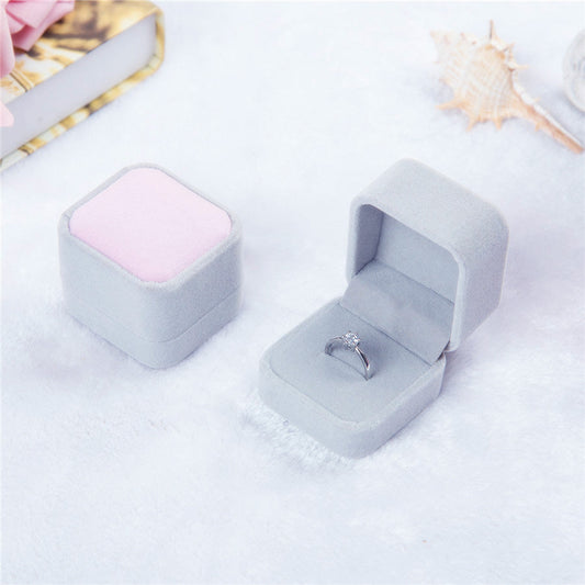 Single Deluxe Plush Gray with Pink Top Velvet Earring/Ring Box