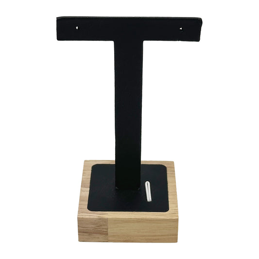 4 1/2" Black Velvet Earring T-Stand with Wood Base and Ring Display