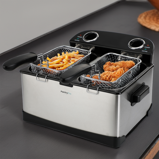 PantryPro 4 Liter Stainless Steel Dual-Tank Electric Deep Fryer