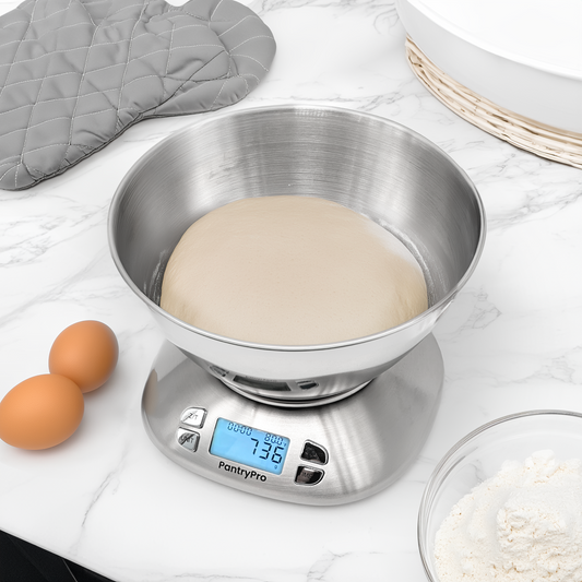 Silver PantryPro 12 lb Capacity Stainless Steel Digital Kitchen Scale with Bowl