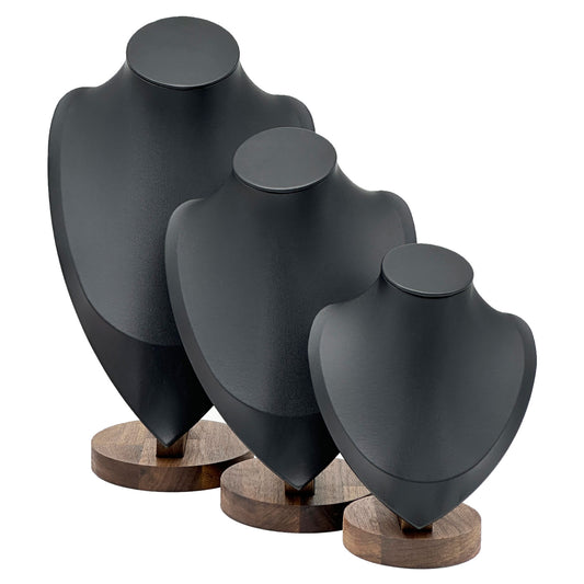 12" Black Leatherette Walnut Base Necklace Bust Display
