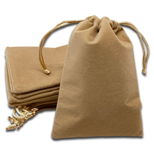 4 1/2" x 6 1/4" Beige Velvet Drawstring Pouch (12-Pack)