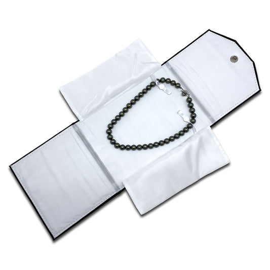 6" x 8 1/4" Black Leatherette Folding Necklace Pouch with Silk Interior