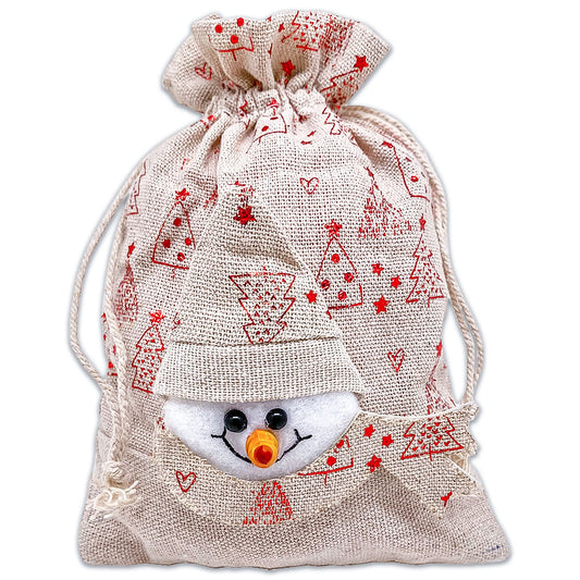 Cotton Muslin Snowman Christmas Tree Drawstring Gift Bags