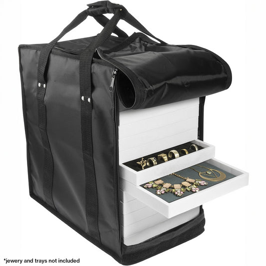 14 Tray Black Collapsible Jewelry Tray Rolling Carrying Case with Handle