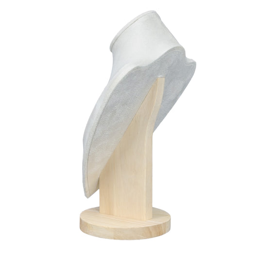 11 1/2" Light Beige Suede Wood Base Necklace Bust Display