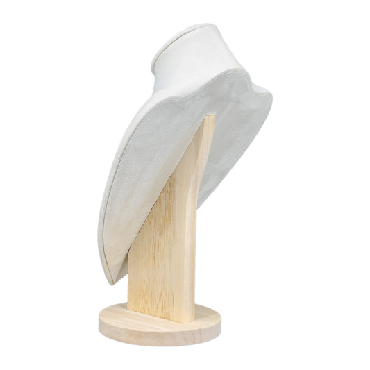 7" Light Beige Suede Wood Base Necklace Bust Display