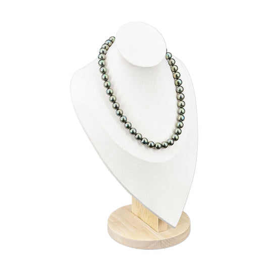 11 1/2" Light Beige Suede Wood Base Necklace Bust Display