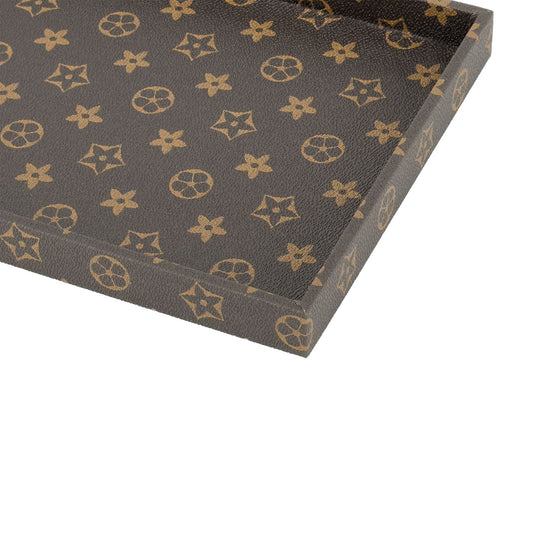 14 1/2" x 8" x 1 1/2" Brown Monogram Pattern Jewelry Display Tray