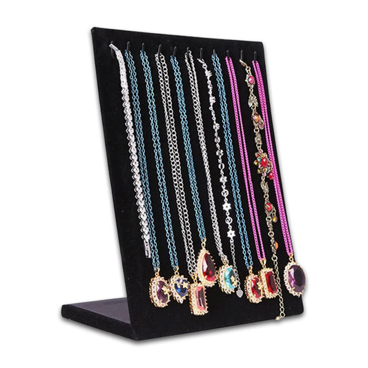 Black Velvet Self-Standing Jewelry Display with 11 Hooks