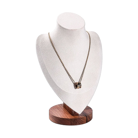 9 1/2" Cream Microfiber Walnut Base Necklace Bust Display