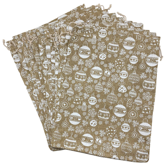 6" x 8" Jute Burlap White Christmas Ornament Drawstring Gift Bags