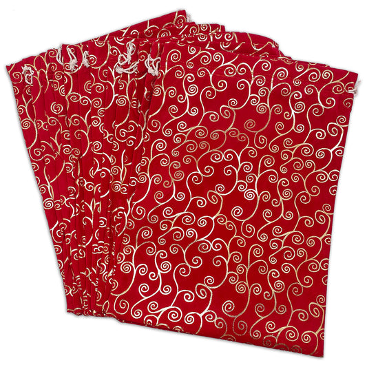 12" x 16" Red Velvet Gold Swirl Christmas Drawstring Gift Bags