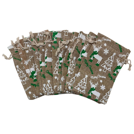 8" x 10" Jute Burlap Green Christmas Tree Drawstring Gift Bags