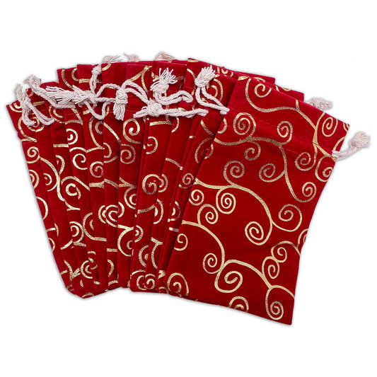 4" x 6" Red Velvet Gold Swirl Drawstring Gift Bags