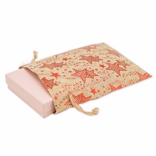 6" x 8" Jute Burlap Red Star Drawstring Gift Bags
