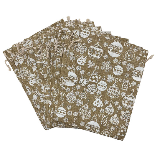 8" x 10" Jute Burlap White Christmas Ornament Drawstring Gift Bags