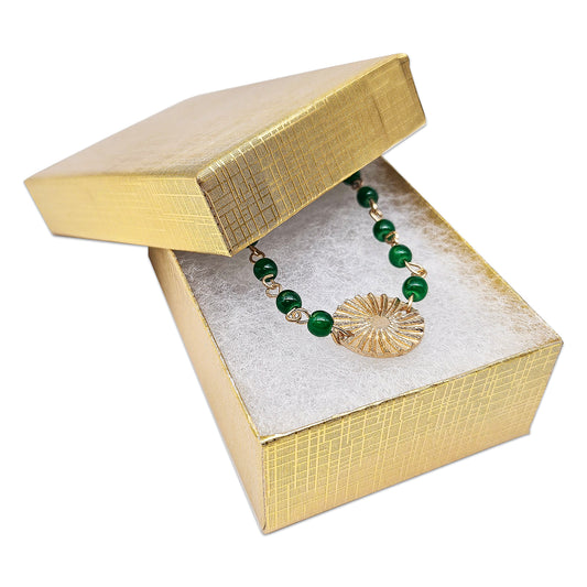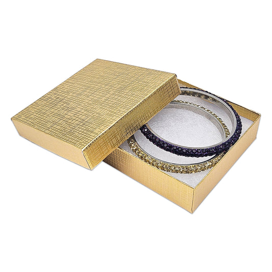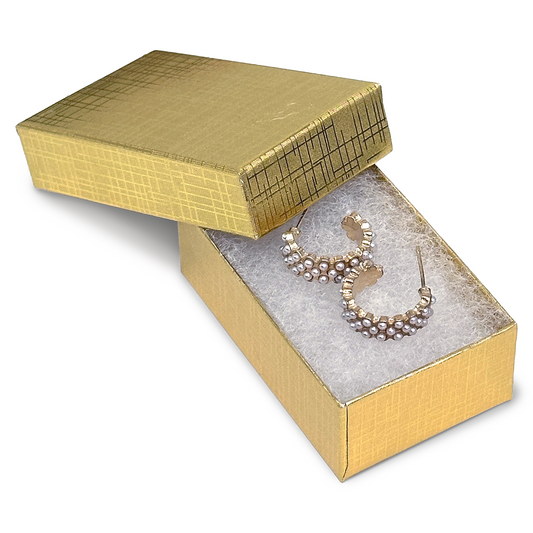 3 1/4" x 2 1/4" x 1" Gold Linen Pattern Cotton Filled Paper Box