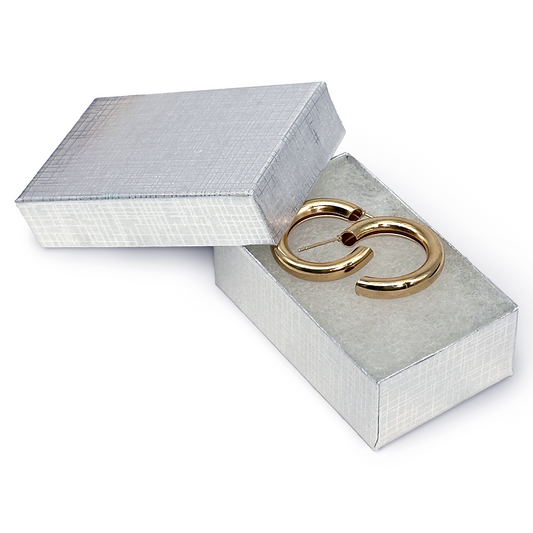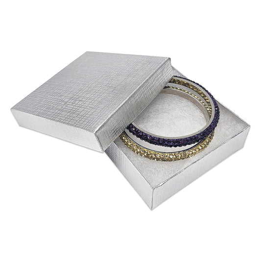 3 1/4" x 2 1/4" x 1" Silver Linen Pattern Cotton Filled Paper Box
