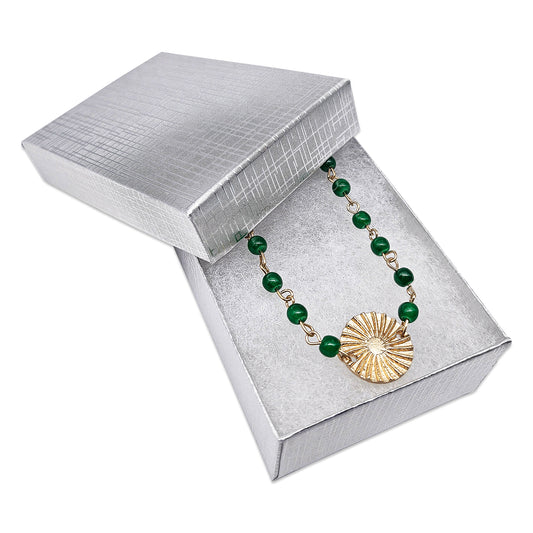 2 5/8" x 1 5/8" x 1" Silver Linen Pattern Cotton Filled Paper Box